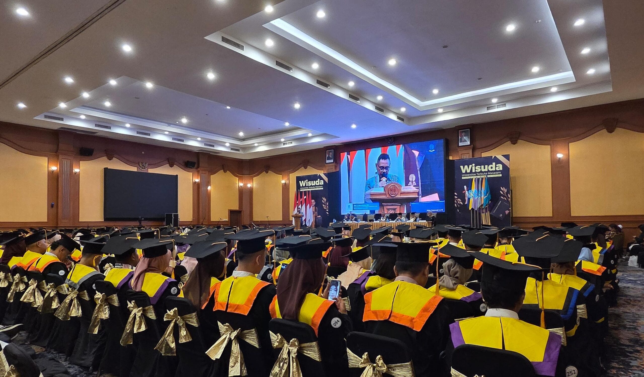 MATARAM (LE) – Universitas Terbuka (UT) Mataram menggelar Wisuda Periode I Tahun 2025, Ahad (8/2/2026), bertempat di Ballroom Rinjani Hotel Lombok Raya, Kota Mataram. Sebanyak 427 lulusan jenjang diploma serta sarjana resmi dikukuhkan. Para wisudawan datang dari beragam latar profesi, menegaskan karakter UT sebagai kampus inklusif berbasis fleksibilitas belajar.